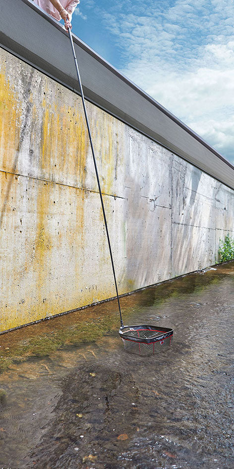 Denna kompakta, teleskopiska håven i kolfiber kan med en mjuk enhandsrörelse fällas ut till en imponerande längd på 4 meter.