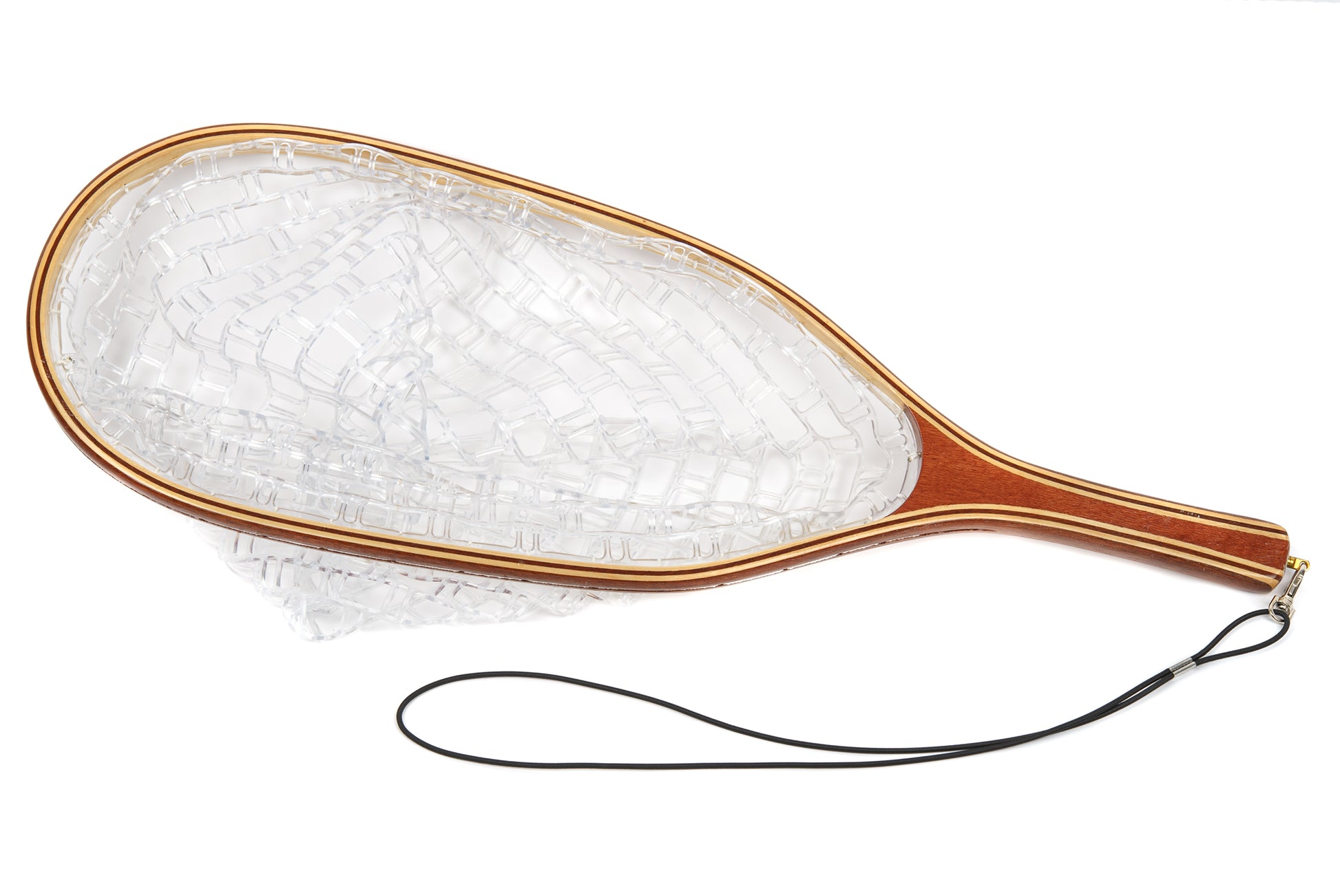 Fly Dressing Ghost Trout är ett fint och välbyggt håvhandtag i trä med ett så kallat “ghost”-nät. Nätet är skonsammare mot fiskens känsliga slemhinna jämfört med traditionella nät, samtidigt som det motverkar dålig lukt och att flugor fastnar. Denna modellen är anpassad för öring och har en mer långsmal öppning.