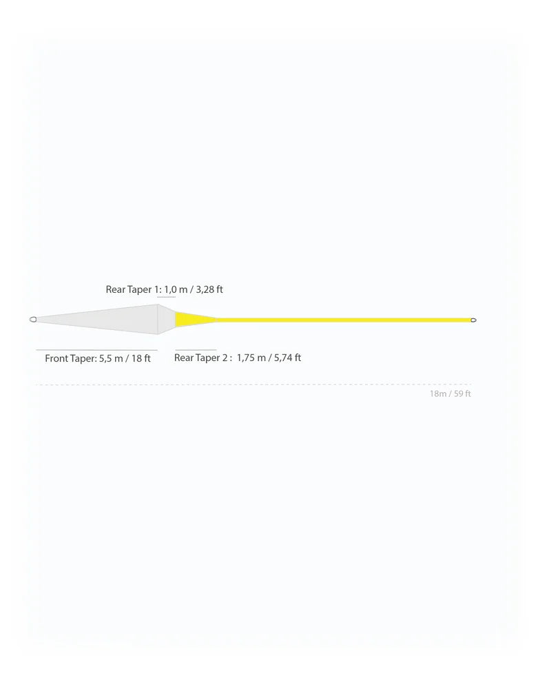 • Unik baktapering och taperade handling line gör att linan passar för mängder av olika kaststilar.