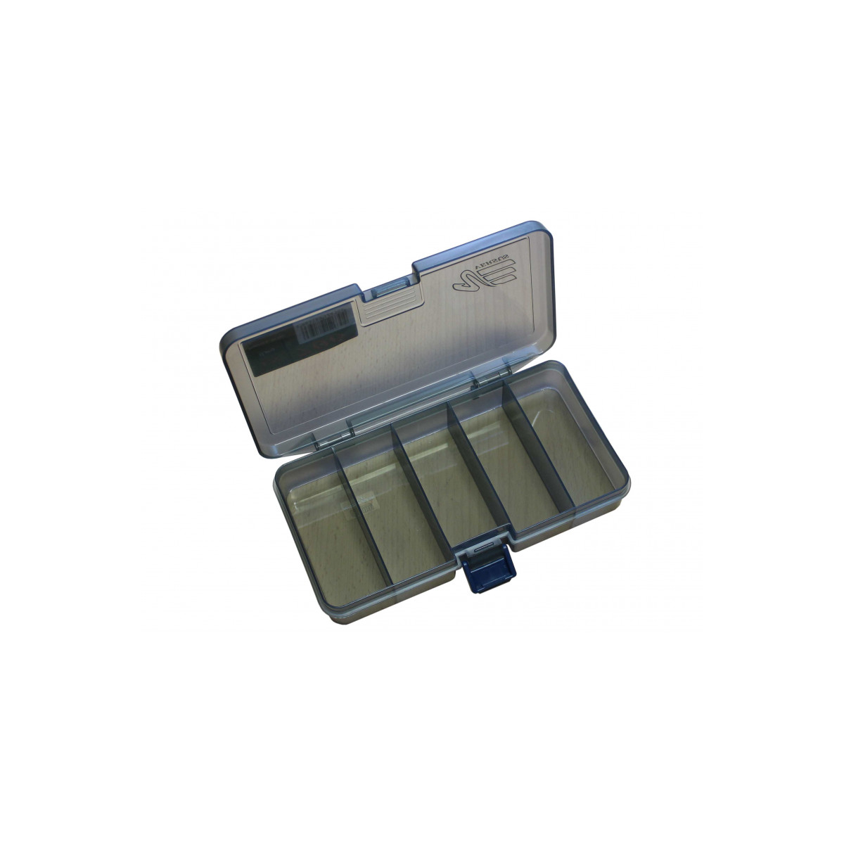Förvara din fiskeutrustning säkert med Meiho Versus VS-706 förvaringslåda i plast. Denna 7 tums, "fly style", plastlåda levereras med 4 fasta plastavdelare som skapar 5 permanenta fack för förvaring av fiskeutrustning. Dessutom har VS-706 ett fast plastlock med stark spärrstängning för att säkerställa att din fiskeutrustning och dina tillbehör stannar kvar i lådan under transport. Denna låda är tillverkad av en stark polypropenplast i en genomskinlig svart färg.