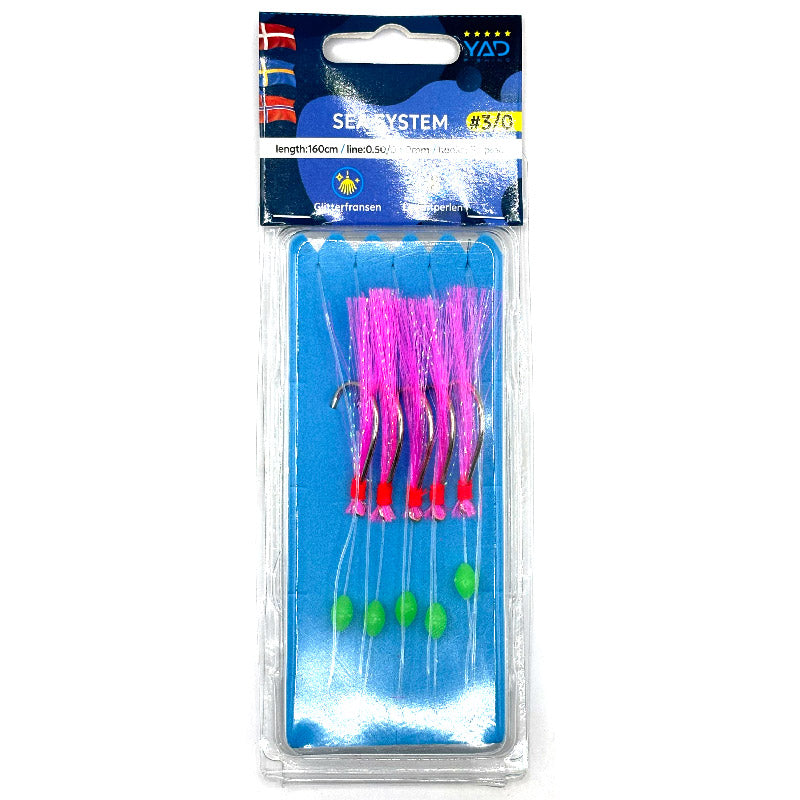 En sillhäckla med en liten självlysande epoxy pärla bak på kroken som ger en extra attraktion till häcklan. Kroken är guldfärgad och bunden på äkta fiskskinn.